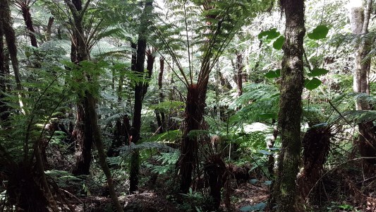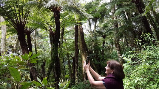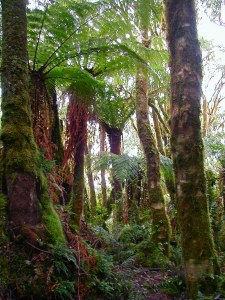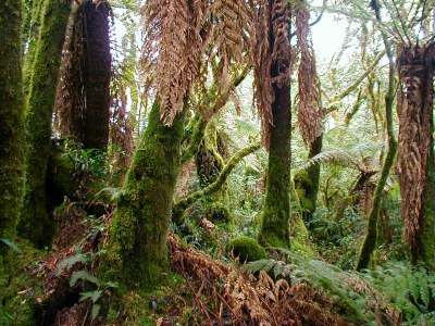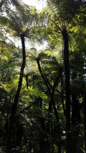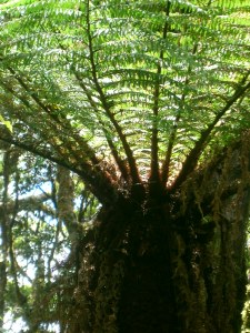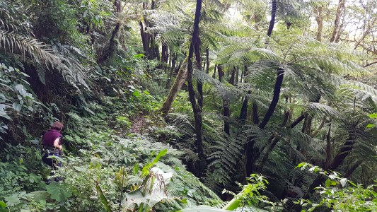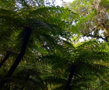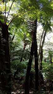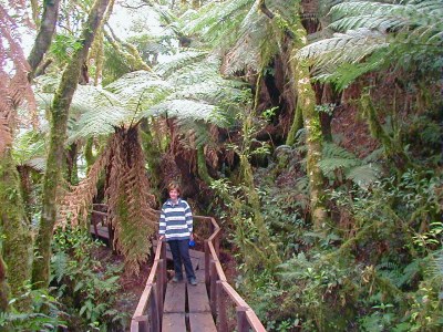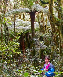 Hier sind wir schon Mitten drin im Farnwald. Diese Gewächse haben die prähistorische Größe ihrer Vorfahren erhalten und wachsen nur an zwei Stellen auf der Welt. In fast 3000 Meter Höhe ist es kühl und meistens ist der Wald in einen dichten Nebel gehüllt.