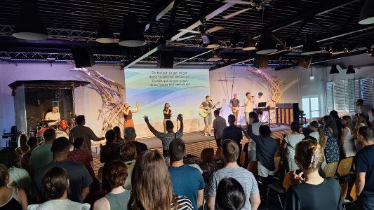 Der Gottesdienst bei der Treffpunkt Leben Gemeinde in Karlsruhe Grünwinkel, wo wir uns immer sehr wohl gefühlt haben.